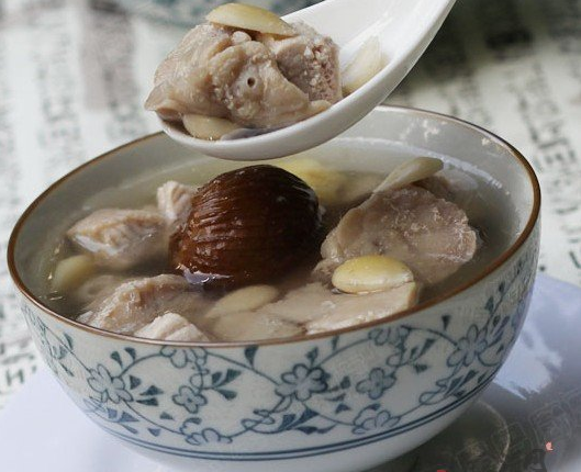食材:带气管猪肺 1个,瘦肉 250克,川贝 10克,南杏仁 15克,杏仁 适量,蜜枣 15克,姜 适量。